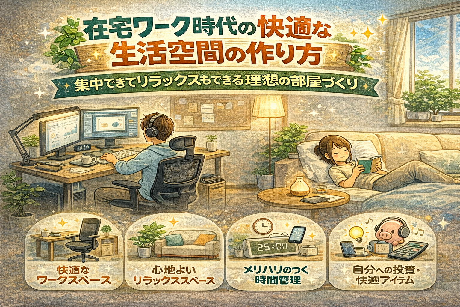 在宅ワークを快適・効率的に行うためには、「ワークスペース(仕事環境)」と「ライフスペース(生活環境)」を意識的にデザインすることが不可欠です。この記事では、在宅ワークの生産性を最大化し、プライベートも充実させるための生活空間づくりのコツを詳しく解説します。