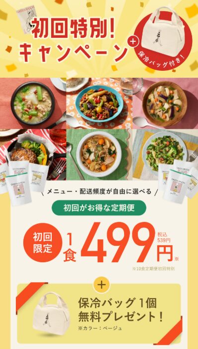 初回限定キャンペーン実施中/自宅で手軽に栄養習慣を始めるなら今 今すぐ公式サイトでチェックする GREEN SPOON(グリーンスプーン)の魅力 忙しくても、食事は妥協したくない。 GREEN SPOONなら、素材にこだわったメニューを自宅で手軽に楽しめます。 ・管理栄養士監修のメニュー設計 ・必要な栄養素をバランスよく摂取 ・レンジで簡単調理n・冷凍でストック可能 ・ライフスタイルに合わせて選べる 買い出しや献立に悩む時間を減らし、健康的で満足感のある食生活へ。 忙しい毎日でも、無理なく続けられる新習慣をサポートします。 商品名 GREEN SPOON(グリーンスプーン) カテゴリ 食品 関連記事 マイワインクラブ ベルーナグルメショッピング メディミール(Medimeal) ミレー定期便 DELIPICKS