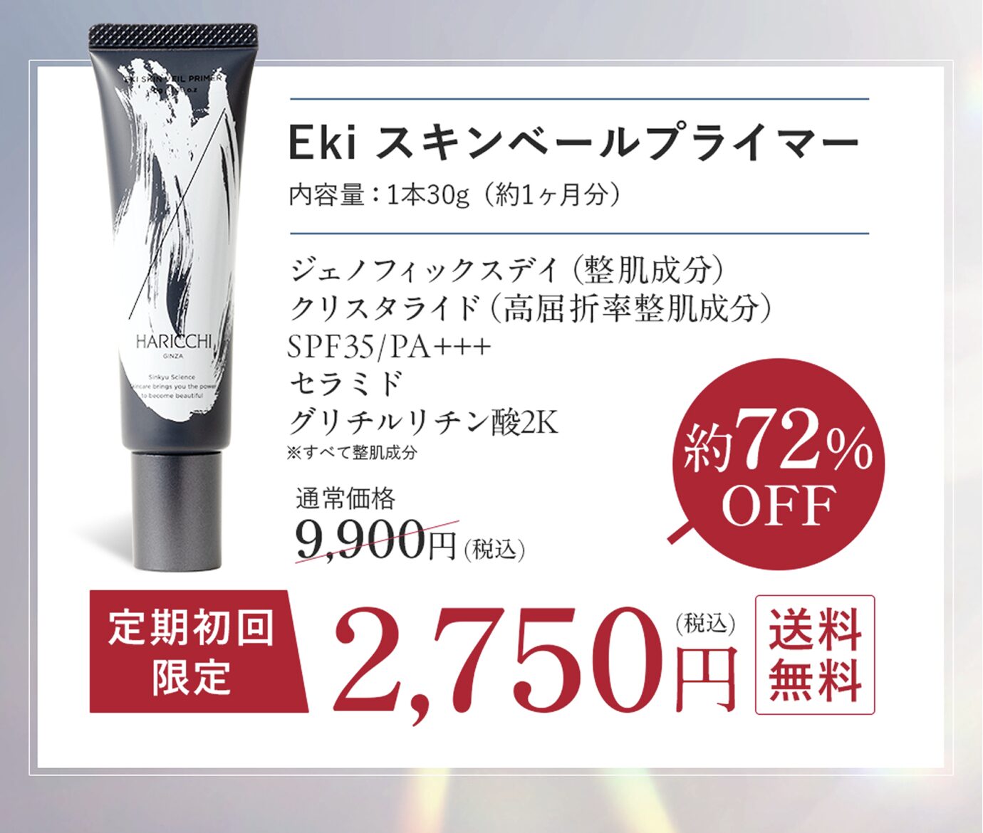 Amazon Pay対応|定期コースの条件を確認して申し込めます 今すぐ公式ページで詳細を見る メイク前のひと手間で、見た目の印象は変わる 肌をなめらかに整えて、ベースメイクをきれいに見せたい方にぴったりのプライマー。 ・メイク前に使いやすいプライマータイプ ・肌表面を整えて、仕上がりの印象をサポート ・毎日のメイクに取り入れやすいシンプルケア ・自宅で手軽に続けやすいアイテム →ファンデ前の仕上がりに自信が持てる →忙しい朝でも、きれいに見せるひと手間ができる 商品名 Ekiスキンベールプライマー カテゴリ コスメ,ヘアケア,ボディケア 関連記事 レチベビー(RETIBABY)