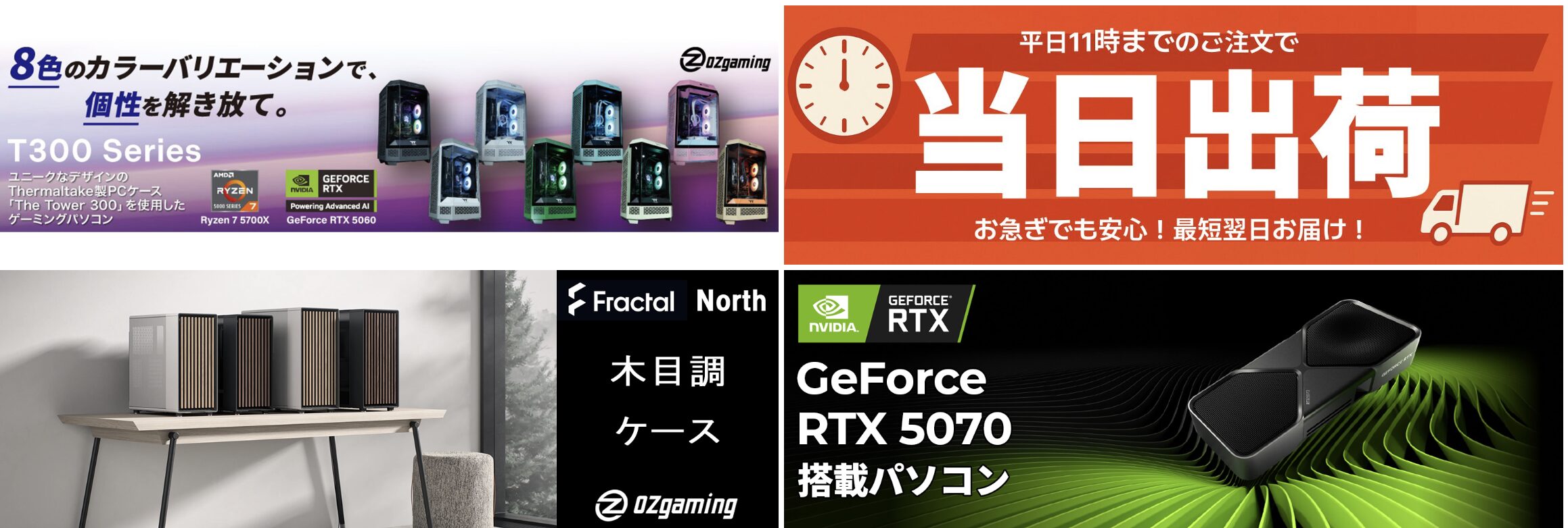 OZgaming ゲーミングPCは、台数限定モデルや新生活応援セール対象モデルから、予算とプレイしたいゲームに合わせて選びやすいのが魅力です。